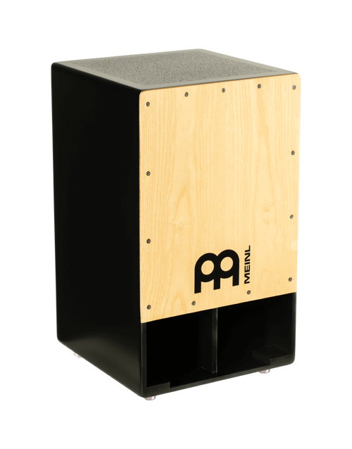 The Meinl Subwoofer Cajon features a forward projecting sound port in place of the traditional rear facing style and an internal reflex channel. This results in an enhanced bass note projection, particularly desirable for live and unplugged situations.