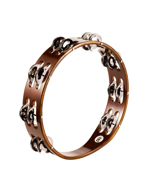 Meinl TA2AB Wood Tambourine 2 Rows with Steel Jingles in African Brown