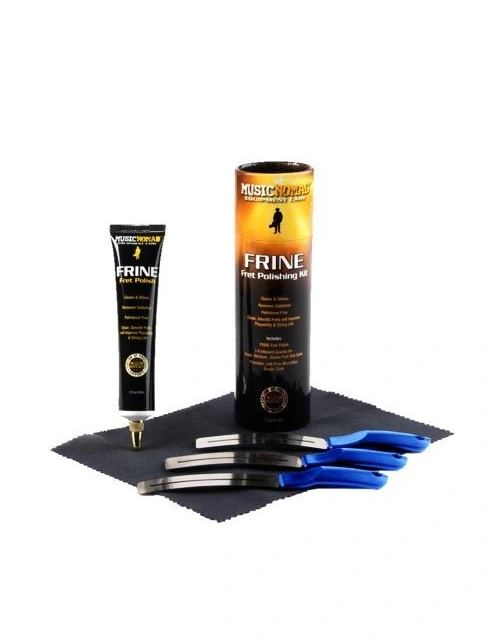 Music Nomad’s FRINE Fret Polishing Kit contains everything you need to give your frets an eye glaring, clean shine. The specially formulated FRINE Fret Polish has micro-fine polishing compounds that safely & quickly remove oxidation, dirt & oil.