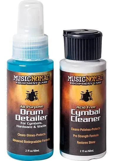 Small in size but big in results we developed & packaged together a small 2 oz. travel size bottle of our most popular drum & cymbal care products to give dealers and musicians a travel size of each bottle at an attractive low price. The All Purpose Drum Detailer & Acid Free Cymbal Cleaner let you clean and polish your entire drum set.