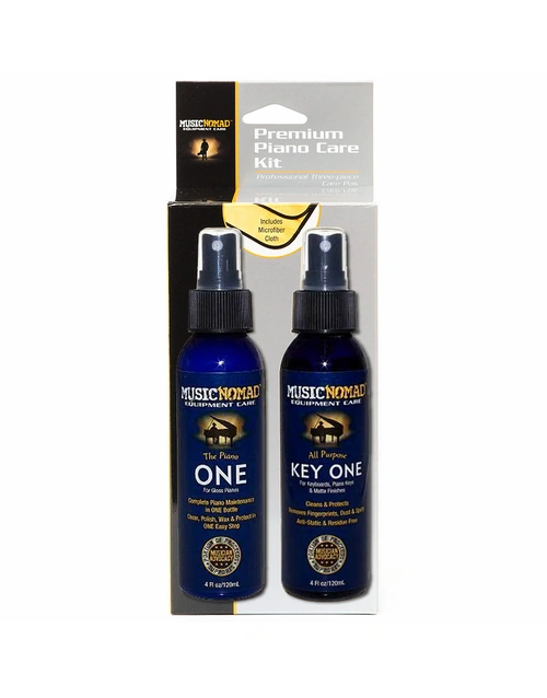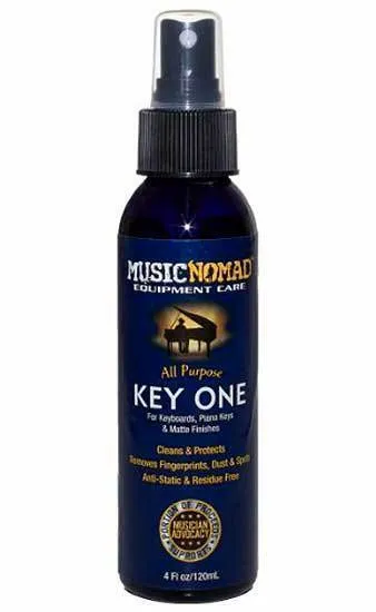 Music Nomad's All Purpose Key ONE cleaner is everything you need to maintain your piano keys in one easy step--simply spray and wipe. This formula is safe on all piano keys and a single spritz cleans fingerprints, dust, and smudges like no other product. Streak free and residue free, it leaves a beautiful, clean surface with anti-static agents to help reduce the attraction and binding of dust.