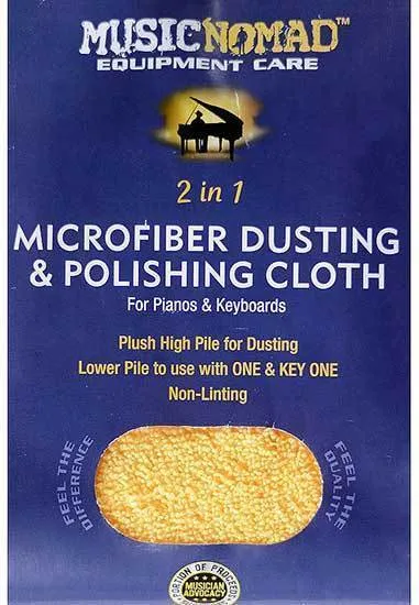 Music Nomad's Dusting and Polishing Cloth prolongs that fresh from the showroom feel for your piano. This 12" x 12" microfiber cloth features a revolutionary material containing 90,000 cleaning microfibers per square inch. The plush higher pile side is designed to lift and trap dust away from the surface. After removing the dust, flip the cloth over to the lower pile cloth side and use with Music Nomad revolutionary cleaners and polishes to clean and restore the surface's original finish. That's Music Nomad quality - raising the bar in equipment care.