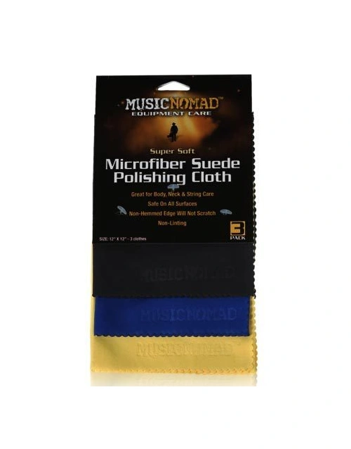 Music Nomad's 3 Pack Super Soft Microfiber Suede Polishing Cloths prolongs that fresh from the showroom feel through our superior design, quality & value. Microfiber is a revolutionary material containing 90,000 microfibers per square inch. These fibers remove dirt & grime from surfaces. Its super soft, lint free construction is the best way to clean your equipment. Also, we use a non-hemmed edge to avoid scratching your prized instrument. Great for your instruments body, neck and string care. It's perfect for electric & acoustic guitar, bass, banjo, mandolin, ukulele & orchestral strings.