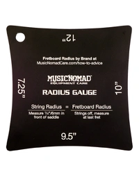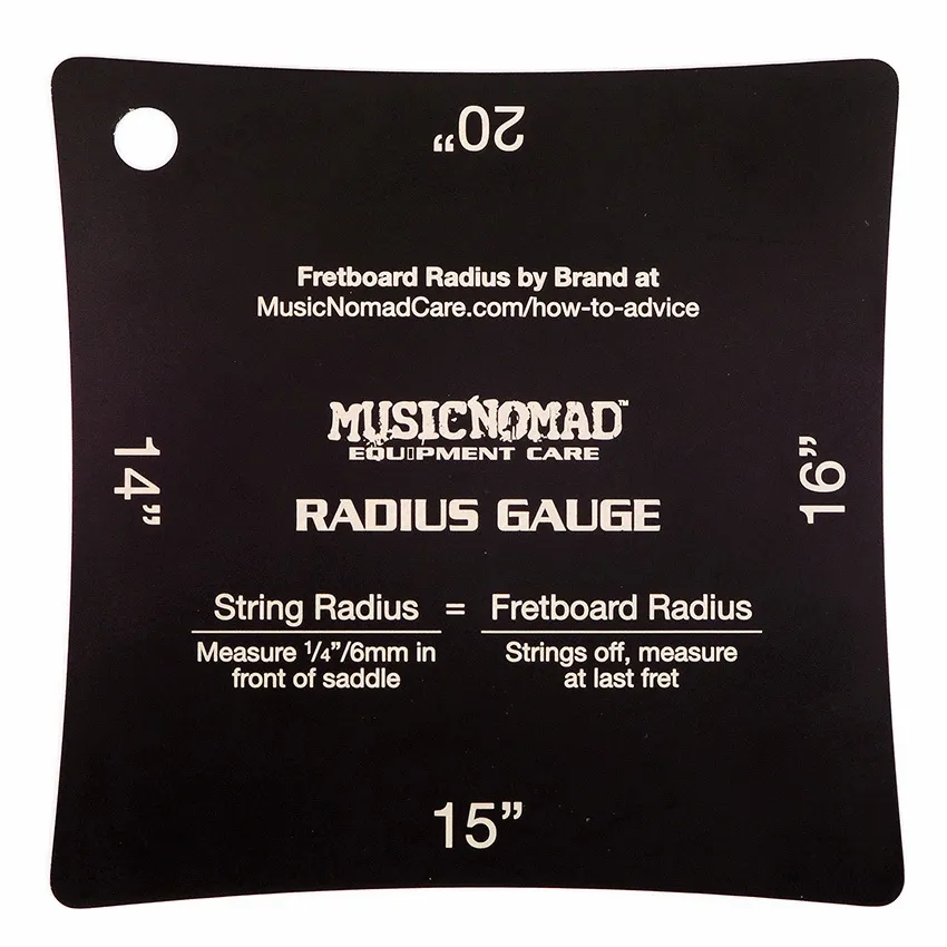 Being able to measure your fretboard & string radius is a critical step in the setup process. Music Nomad's precision Radius Gauge is packed with features & benefits. The accurate measurements (7.25", 9.5", 10", 12", 14", 15", 16", 20") & easy to follow instructions on the gauge give you the confidence to get the job done right. The premium stainless steel with polished smooth edges combined with laser etched numbers and text ensures years of use. The unique black finish design makes it easier to see if the string is touching when compared to traditional silver steel gauges. That's Music Nomad quality - raising the bar in equipment care.