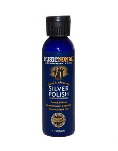 Keep instruments as polished as your playing skills. Music Nomad's ultra-refined Silver Polish maintains a brilliant new-look shine while reviving dull, oxidized & tarnished surfaces. This exclusive formula keeps silver, silver plating, nickel plating, & most unlacquered metals brighter longer, while delivering invisible protection that helps reduce the formation of tarnish. It even smells great.