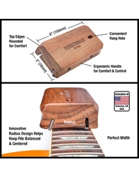Made of high quality Acacia hardwood that is durable and long-lasting and is ergonomically designed to give you comfort and control when filing. We even include a convenient hang hole.