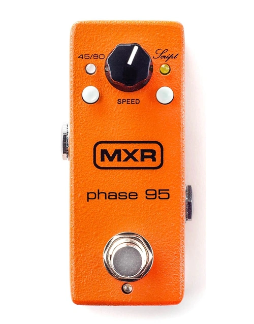 MXR knows phasers. The Phase 90’s compact size, superior construction, and refined sound put MXR on the map, and it set the standard by which all other phasers are judged. Two years later, MXR released the Phase 45—a mellower version of the effect favored for its ability to easily blend into a band's mix. Now, you can get both iconic circuits in a single pedal while tightening up your pedalboard at the same time. The Phase 95 combines the Phase 45 and Phase 90 circuits in a mini housing with about half the footprint of a standard MXR pedal. The 45/90 switch toggles between the Phase 45 mode’s subtle two-stage phasing and the Phase 90 mode’s more pronounced four-stage phasing, while the Script switch toggles between two phasing styles. The Phase 95 is set to modern style phasing by default, which relies on feedback to create light harmonic distortion and gives the effect a more accentuated swoosh. Engaging the Script switch removes feedback for a lusher, more subdued sound with higher headroom and greater clarity. The familiar Speed control sets the rate of the effect. The Phase 95 may be small, but it’s full of rich phase tones, and it’ll take a beating on the road.