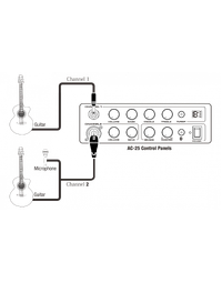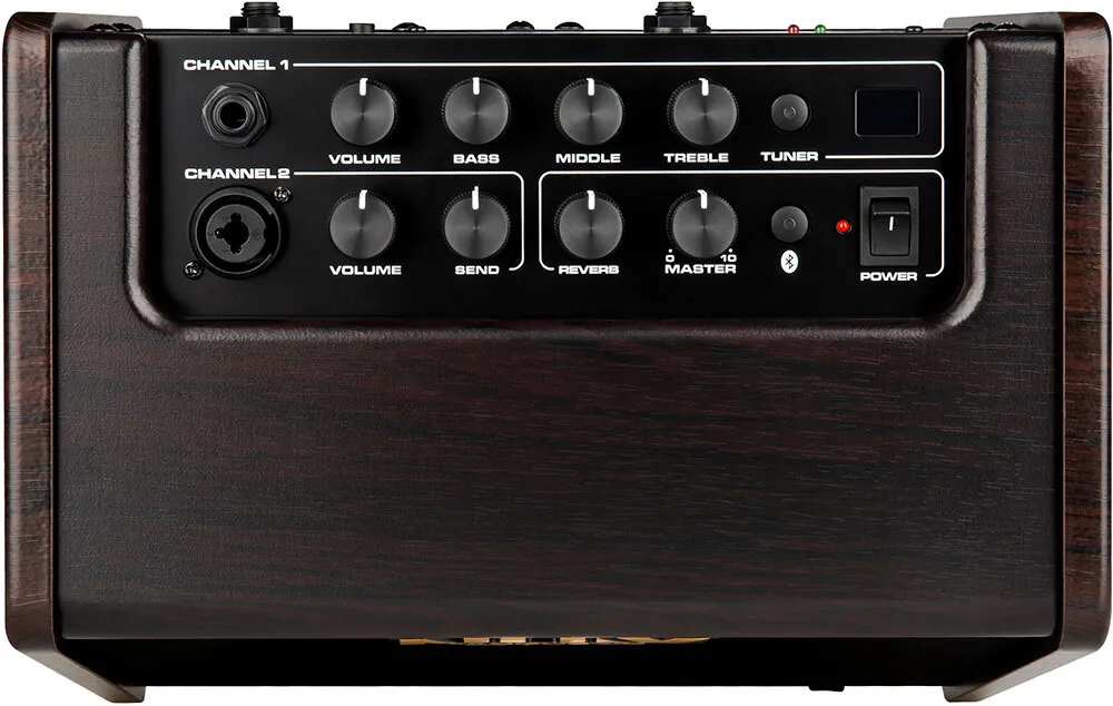 The NU-X AC25 Stageman is a compact, battery-powered 25W acoustic amplifier built for portability and performance. With two independent channels—one for instrument and one for mic input—it’s ideal for solo performers and street musicians. A 6.5" speaker delivers clear, warm tone, supported by onboard reverb and two selectable amp models: the rich-sounding Stageman and the transparent LBox. Bluetooth streaming and AUX-in options allow backing track playback, and the amp can run for up to 4 hours on battery power. It also integrates with the Stageman mobile app for tone editing and drum machine control.