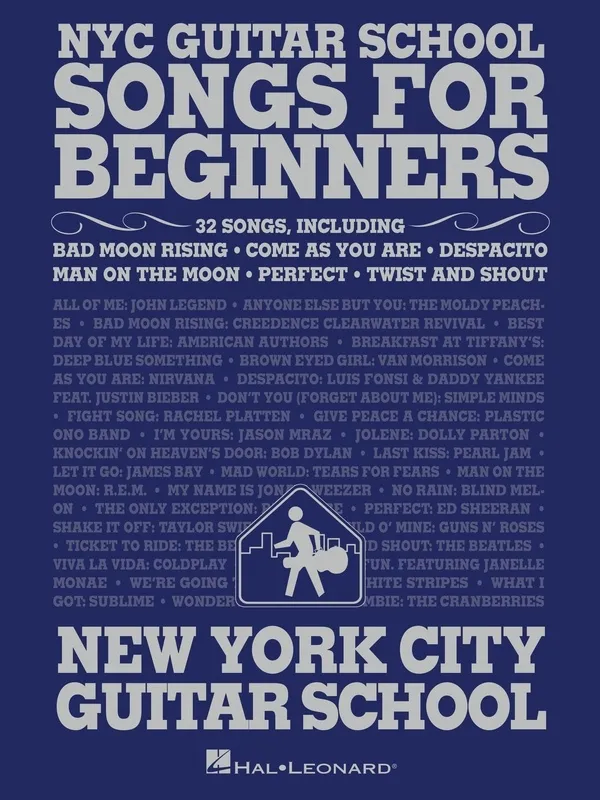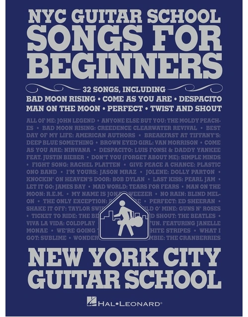 The ultimate first songbook for a brand new guitarist. Beginning guitarists can build their skills step-by-step with 32 of their favorites with this songbook from the acclaimed New York City Guitar School. Includes: Bad Moon Rising (Creedence Clearwater Revival) • Come As You Are (Nirvana) • Despacito (Luis Fonsi & Daddy Yankee) • I'm Yours (Jason Mraz) • Jolene (Dolly Parton) • Man on the Moon (R.E.M.) • Perfect (Ed Sheeran) • Sweet Child O' Mine (Guns N' Roses) • Twist and Shout (The Beatles) • Viva La Vida (Coldplay) • What I Got (Sublime) • and more.