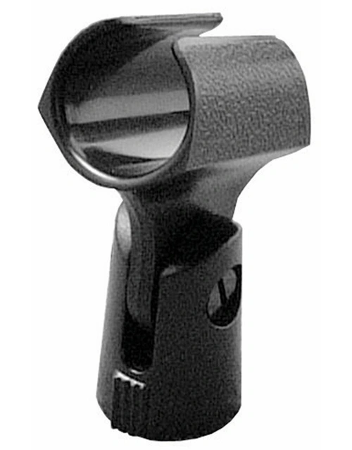 On Stage microphone holder with a sleek European style, hard plastic. For use with most dynamic mics.