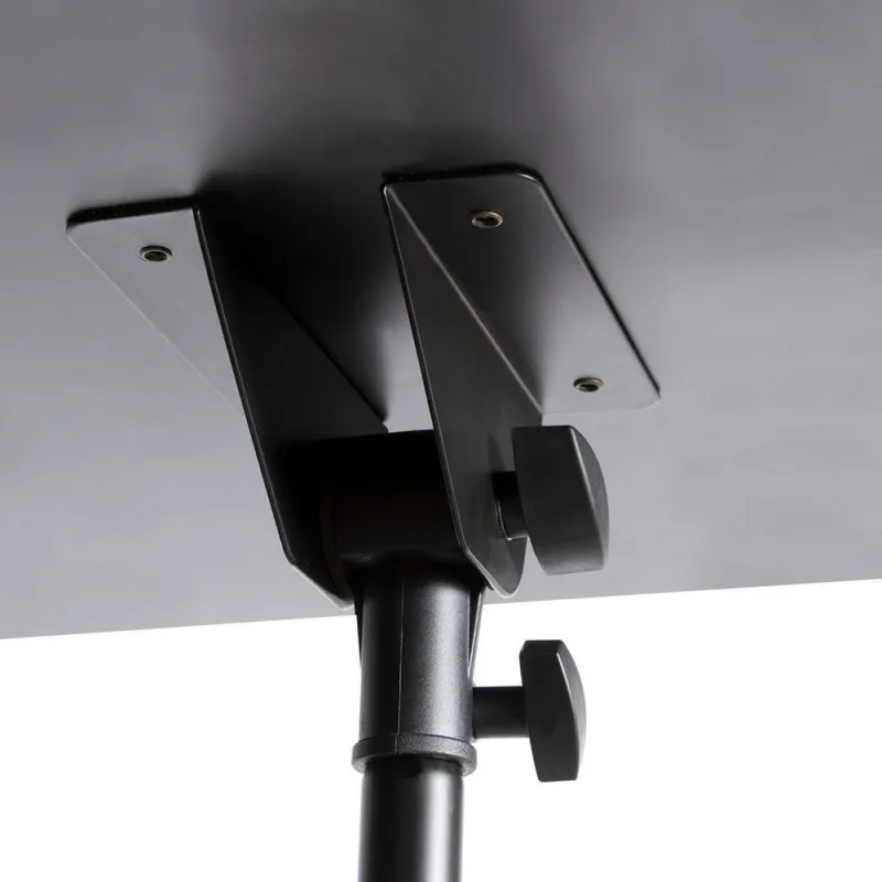 The On-Stage DPT5500B Percussion Table offers a spacious and adjustable platform for percussion instruments, electronics, or laptops. Its 18.5" x 18.5" EVA-padded surface protects your gear and tilts up to 90° for optimal positioning. Height adjustable from 27.5" to 40.5", the DPT5500B sits on a stable aluminium tripod base with non-slip feet and supports up to 25 lb. Whether you're performing live or setting up in the studio, it folds down for easy transport and features a sleek black powder-coated finish.