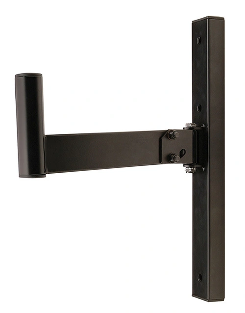 The On-Stage Wall Mount Speaker Bracket is designed to provide secure mounting with flexible positioning for small to medium speaker cabinets. Built from steel, it offers reliable support with a 45 kg (100 lb) weight capacity, making it suitable for permanent installations in studios, venues, rehearsal rooms, and home audio setups.