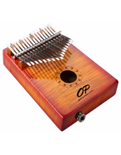 The Opus Percussion 17-Key Curly Maple Kalimba with Pickup in Sunburst Gloss Finish is a quality Kalimba with 17 keys, in C-Tone, that looks fantastic in Sunburst finished Curly Maple Wood. The included pickup allows you to amplify your Kalimba through an amp or P.A.