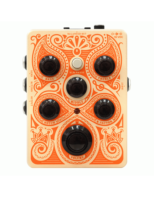 The Orange Acoustic Pedal takes all the know-how of our acclaimed Acoustic Pre TC preamp and Crush Acoustic 30 amplifier, cramming it all into a do-it-all, compact preamp pedal. Whether you need to win the battle against feedback, handle complex effects chains, brighten up a dull instrument or just plug into a PA, the Acoustic Pedal has you covered – in top-notch Orange style. With a low-noise JFET circuit design, surgical-yet-flattering EQ, XLR and 1/4? outputs and a buffered FX Loop, all situations are taken care of. This high-headroom, high-quality pedal keeps your setup simple and controlled, leaving you free to do what you do best. Play. EQ with notch control Single-ended JFET circuit design to guarantee insanely low levels of background noise Studio-grade, balanced XLR output Highly-transparent, buffered FX Loop.