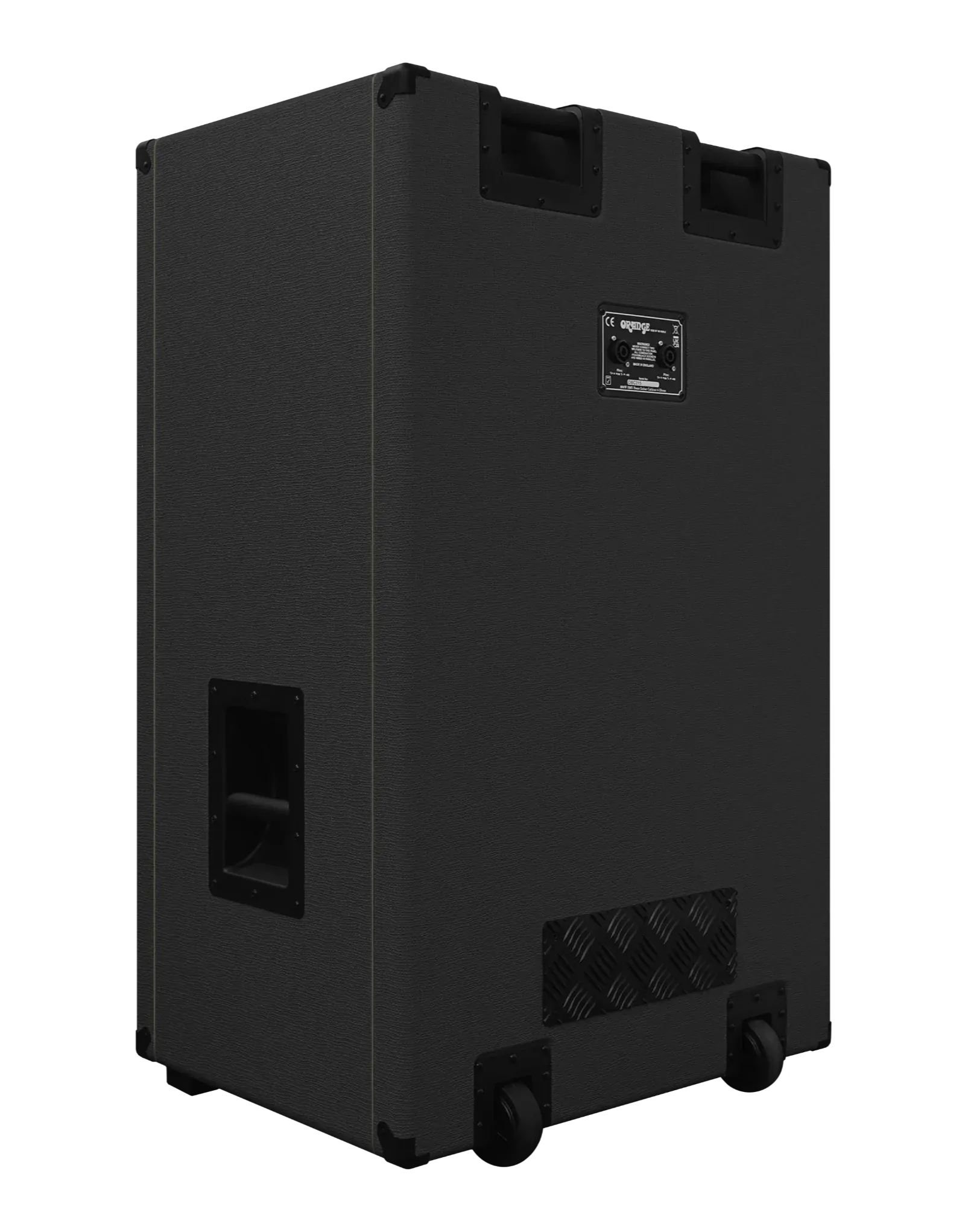 The Orange OBC215C 2x15" Bass Amp Speaker Cabinet Black delivers the authority of dual 15-inch speakers in a single, integrated enclosure. Loaded with two Celestion Pulse XL 15.17 drivers and rated at 800 watts at 4 ohms, the cabinet moves significant air while maintaining tight, controlled response. The dual acoustically isolated chambers, each with its own front port, prevent the speakers from interacting in a way that muddies the low end. That design produces a deeper, warmer bass voice with broad stage spread, allowing notes to feel full and supportive at gig volume rather than simply louder.