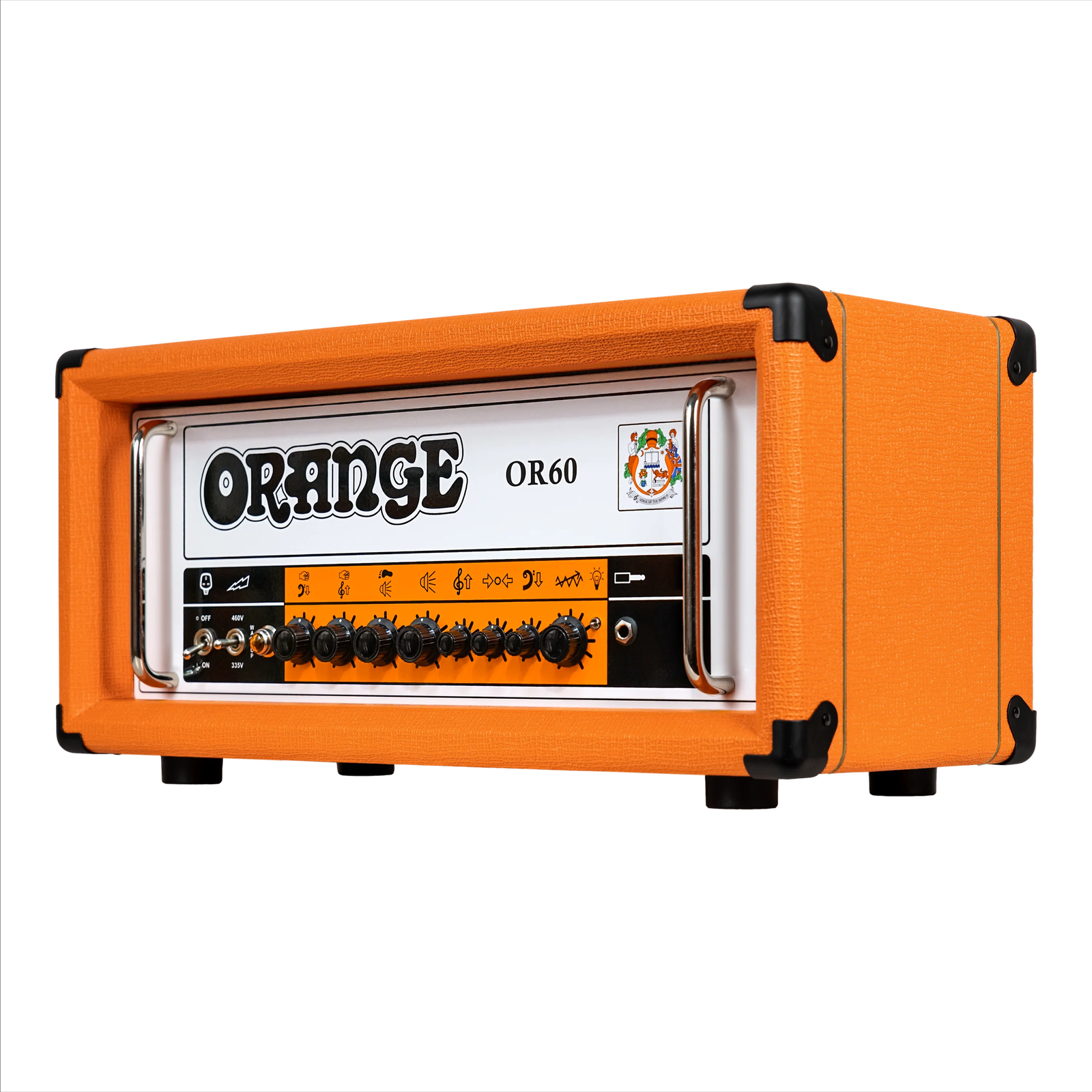 The Orange OR60 is a 60-watt UK-built all-valve guitar amp head designed for players who want clarity, headroom and controllable power-amp response. Driven by a pair of 6L6 power valves, the OR60 delivers tight low end, focused mids and open high frequencies, making it equally capable of sparkling cleans, edge-of-breakup textures and saturated drive. A switchable 60W/30W mode allows the output stage to be pushed harder at lower volumes, changing feel and compression without altering the amp’s core voice.