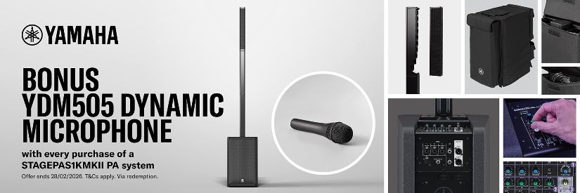 Our price$469.00RRP$549.99In stockAvailable in-store or to ship from storeYamaha Stagepas 1K MKII 1100W Portable PA System w/BONUS FREE YDM505 Dynamic Microphone