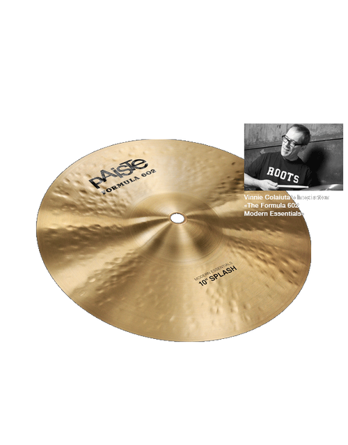 Developed in collaboration with Vinnie Colaiuta, Formula 602 Modern Essentials cymbals combine the essence of Formula 602 Classic Sounds models with the complexity of the Signature Traditionals series. The Formula 602 Modern Essentials 8" Splash has an explosive sound that's low tuned for lively accents at moderate volume.