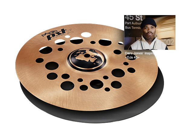 PSTX DJs 45 cymbals were created in collaboration with artist Daru Jones. The DJ theme and the 45 rpm 12-inch single served as guidance in the overall design and naming of the DJs 45 series. This 12" hi-hat pair has has a fast and dry sound that perfectly fits the world of hip-hop & electronica.