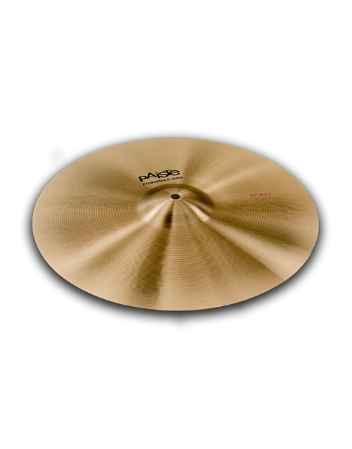 The Paiste 16" Formula 602 Heavy Crash Cymbal is a multifunctional cymbal with solid, assertive crash and bright, clear ping. Bright, powerful, solid, and clear, it has a medium wide range and clean mix with a heavy feel. Powerful, explosive attack.