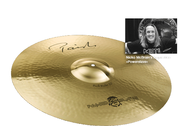 Forged from a proprietary bronze developed specifically for cymbals, handcrafted by highly skilled Swiss craftsmen, Paiste's Signature Series Cymbals are instruments of unsurpassed quality. The 22" Signature Reflector “POWERSLAVE" Bell Ride was developed in co-operation with the legendary "Iron Maiden" drummer Nicko McBrain.