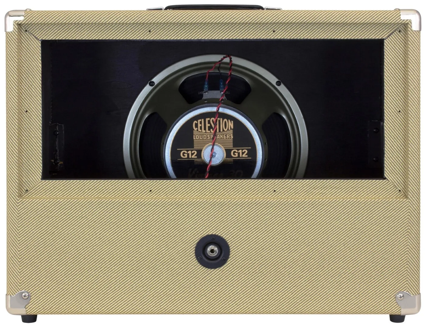 No matter how good your amp is, the speaker cabinet must also be top quality to have a great tone. The Peavey 112-C has 18mm plywood construction and a premium Celestion Vintage 30 speaker. The back of the cabinet is convertible for changing the cabinet to an open back configuration. The white piping gives the black grill and black tolex a nice finished look. Rubber feet and metal corners complete the package. Great quality, great look, great tone and great value!