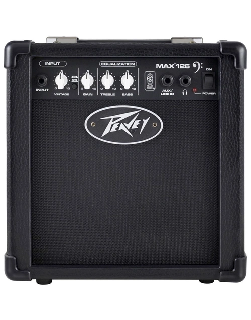 The Peavey MAX126 10W 1x6.5 Bass Combo Amp is a 10 watt bass practice amp loaded with features that make it ideal for small rehearsals, including TransTube® gain boost, multi-band EQ, Peavey exclusive DDT™ compression, headphone output and auxiliary input.