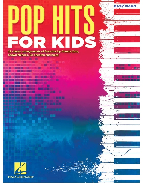 25 easy piano arrangements of popular hits kids will love to play as their piano playing skills blossom.