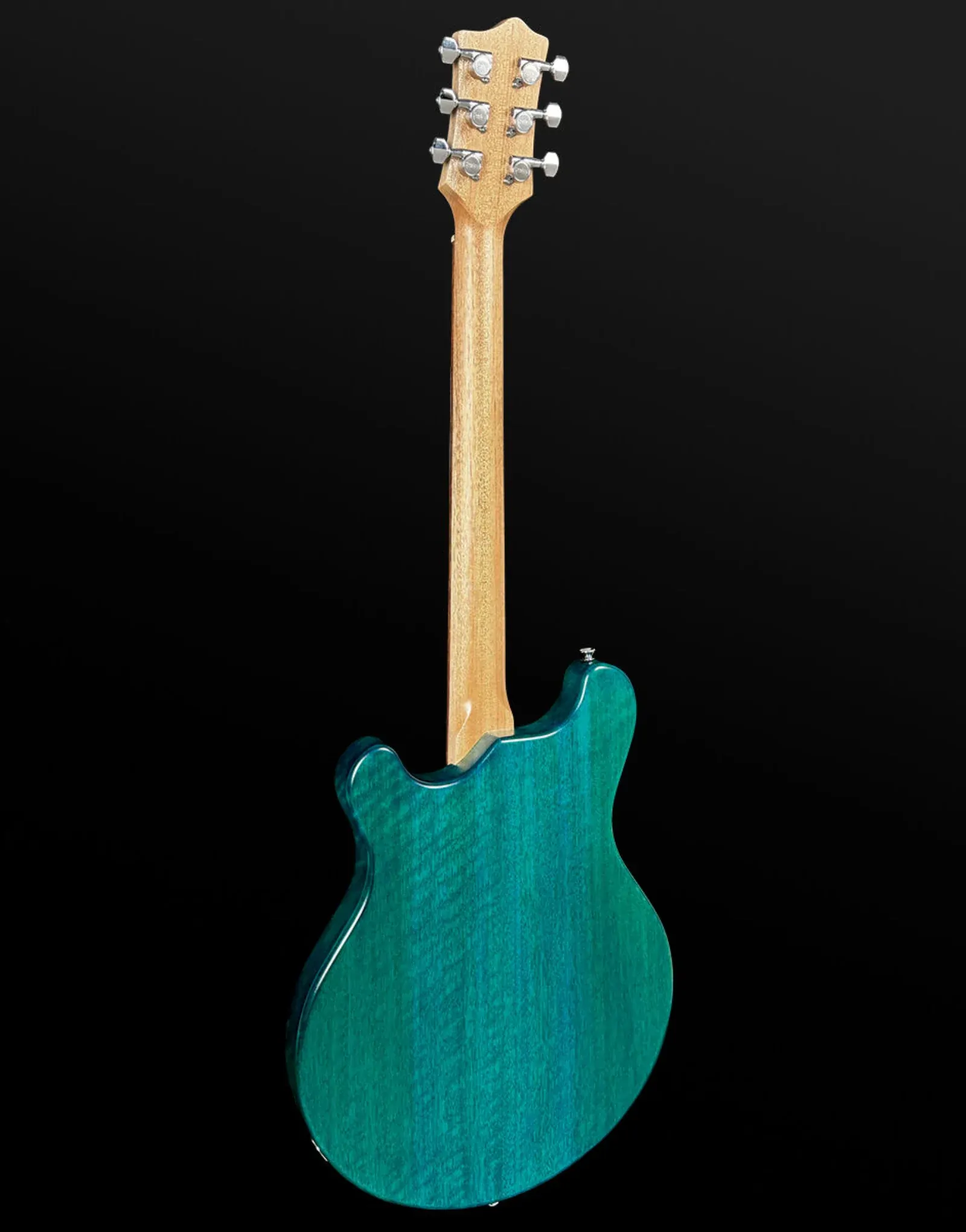The Pratley PRAP11-NB is a premium double-cut solid body electric guitar, expertly handcrafted in Australia. Constructed from Queensland Maple, it delivers a balanced, resonant tone with a natural warmth similar to Mahogany. The neck, made from Queensland Maple Silkwood, ensures smooth playability, while the Johnstone River Teak fretboard provides excellent stability. This guitar is fitted with a Graphtech wraparound bridge for precise intonation and sustain, along with premium Alnico II single-coil pickups that deliver clear, dynamic tones perfect for a variety of playing styles. Finished in a stunning Natural Blue satin nitrocellulose lacquer, it exudes vintage style and professional craftsmanship.