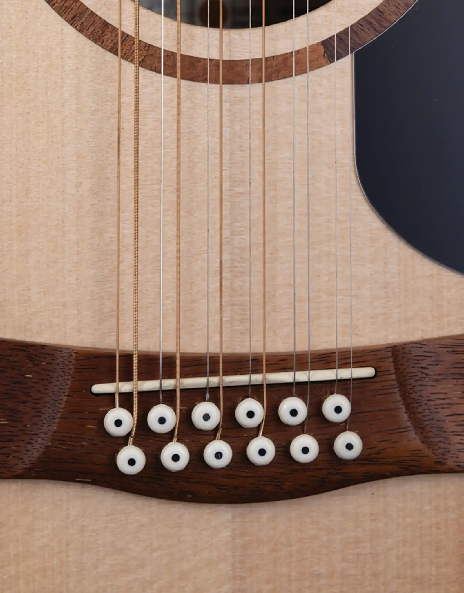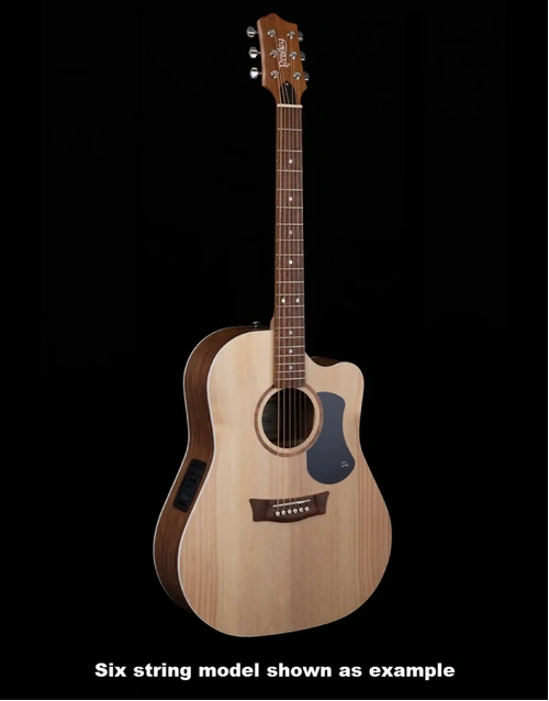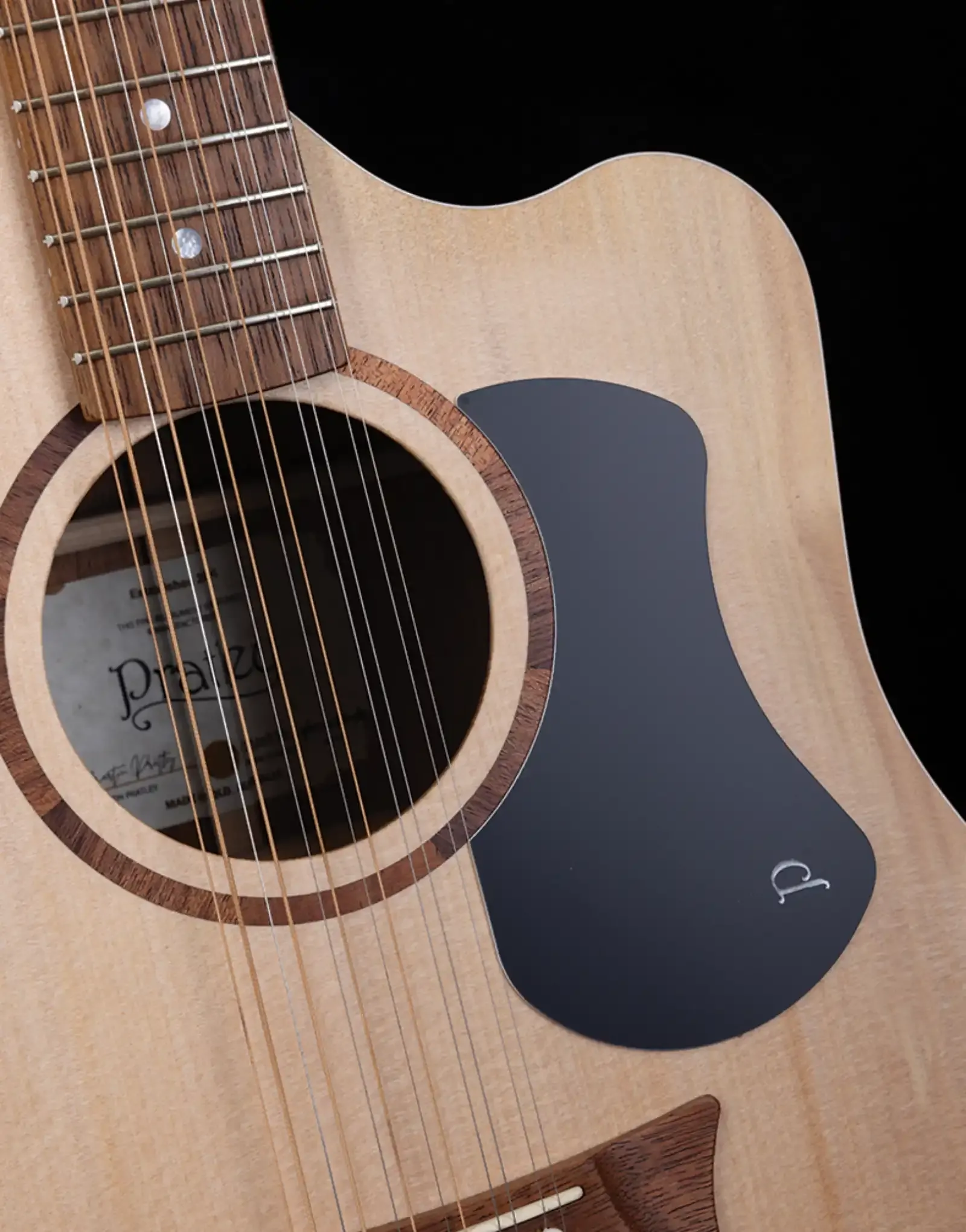The Pratley PRD12-SCE-BWB is a premium 12-string dreadnought cutaway, handcrafted in Australia from solid Queensland Bunya and Blackwood. This combination provides a rich, full-bodied tone with excellent resonance. The AA Grade Johnstone River Teak fretboard ensures smooth playability, while the L.R. Baggs StagePro Element pickup delivers natural amplified sound. Enhanced with a radial grain pattern rosette and Australian Blackwood headstock cap, this guitar is as visually stunning as it is sonically impressive.