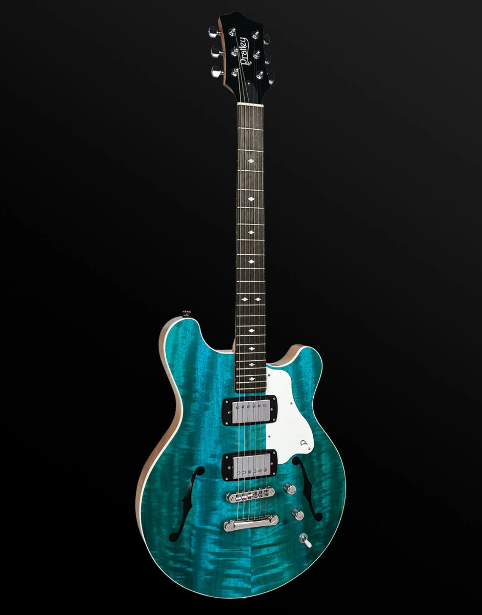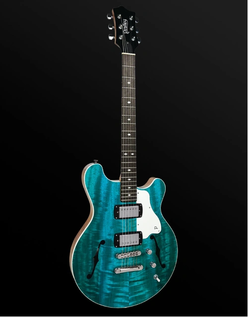 The Pratley PRRBJ22-TLB Semi-Hollowbody Electric Guitar is a beautifully handcrafted instrument featuring a vintage-inspired double-cutaway design. Built with a solid Queensland Maple body (85% hollow) and a hand-selected Flame Queensland Maple Silkwood top, this guitar delivers exceptional resonance and clarity. The premium True Vintage PAF humbuckers provide rich, dynamic tones with a classic character suited for a variety of genres. The Wenge fingerboard ensures smooth playability, while a Gotoh T-O-M bridge and stop-bar maintain tuning stability and sustain.
