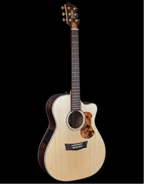 The Pratley PRSTOM-SCE-RWS Studio Series OM Model is a premium Australian-made acoustic guitar featuring a cutaway design for improved upper-fret access. Crafted with a solid Indian rosewood back and sides and a AAA solid Sitka spruce top, this guitar delivers rich resonance and articulate clarity. The premium flame Queensland maple silkwood neck and African wenge fretboard provide exceptional playability. Quarter-sawn Queensland Bunya bracing enhances sustain and stability. The L.R. Baggs StagePro Element pickup ensures natural and detailed amplified tone. Finished in a satin nitrocellulose lacquer, this guitar is built for professional performance and longevity.