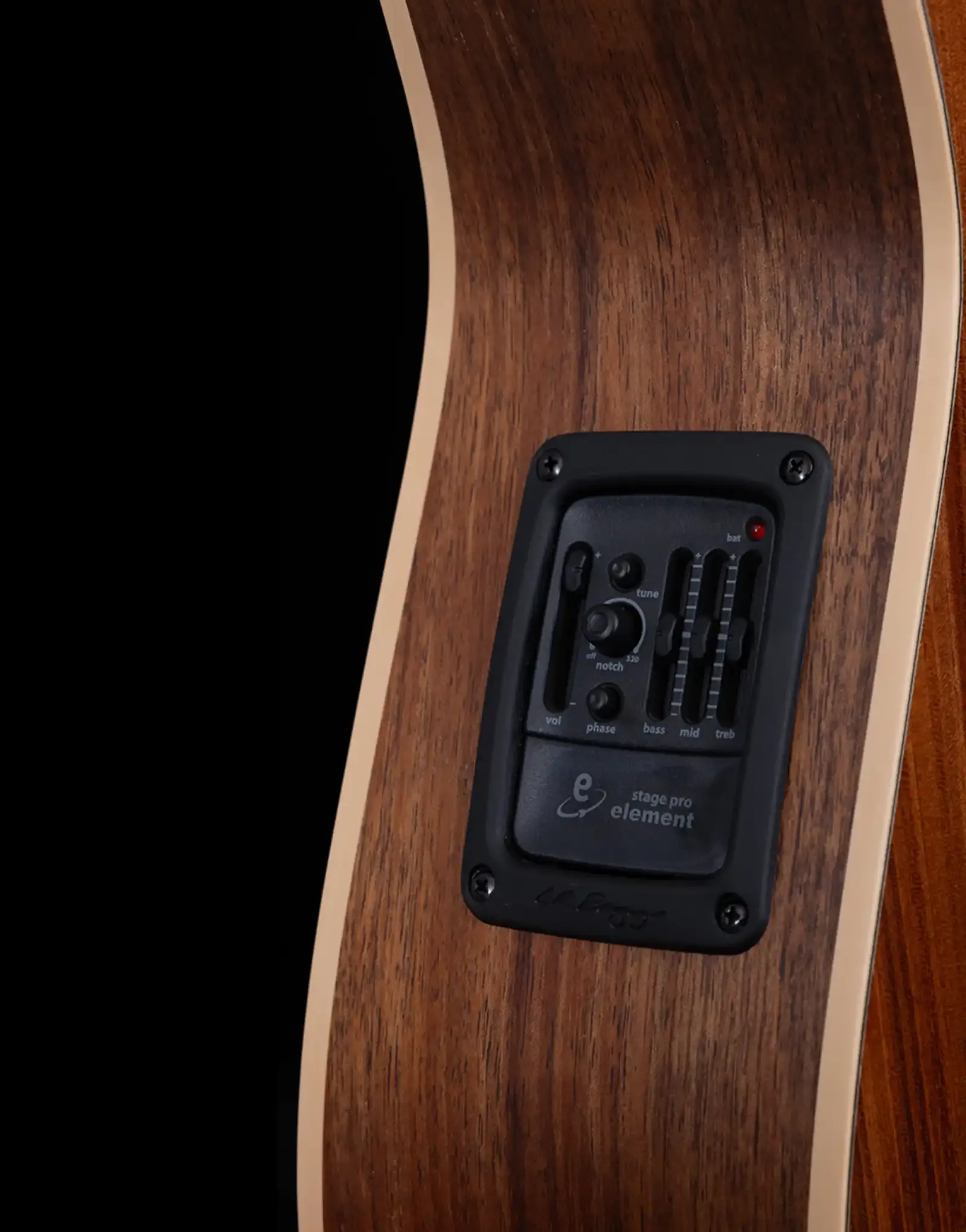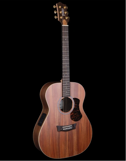 The Pratley PRSTOM-SE-BWC Studio Series OM Model is an Australian-crafted acoustic guitar featuring solid Australian blackwood back and sides with a select solid Australian cedar top. The OM body shape offers a bright and articulate tone, making it ideal for fingerstyle players. A premium flame Queensland maple silkwood neck and African wenge fretboard ensure smooth playability and durability. Quarter-sawn Queensland Bunya bracing enhances resonance and sustain, while the L.R. Baggs StagePro Element pickup provides natural amplified tone. Finished in a fully grain-filled semi-gloss nitrocellulose lacquer, this guitar blends premium aesthetics with top-tier craftsmanship.