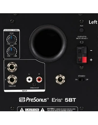 What sets the Eris 5BT apart is its integrated Bluetooth 5.0 wireless connectivity, allowing you to effortlessly stream audio from your devices. Whether you're mixing, gaming, or enjoying music, the wireless convenience takes your audio experience to the next level. Flexible connectivity options, including ¼-inch balanced TRS, RCA, and ⅛-inch stereo unbalanced line inputs, ensure compatibility with various sources. The front-panel volume control and integrated headphone amplifier add to the user-friendly design. The high- and low-frequency tuning controls give you the power to fine-tune the monitors' frequency response to your liking, ensuring top-notch performance in any acoustic environment.