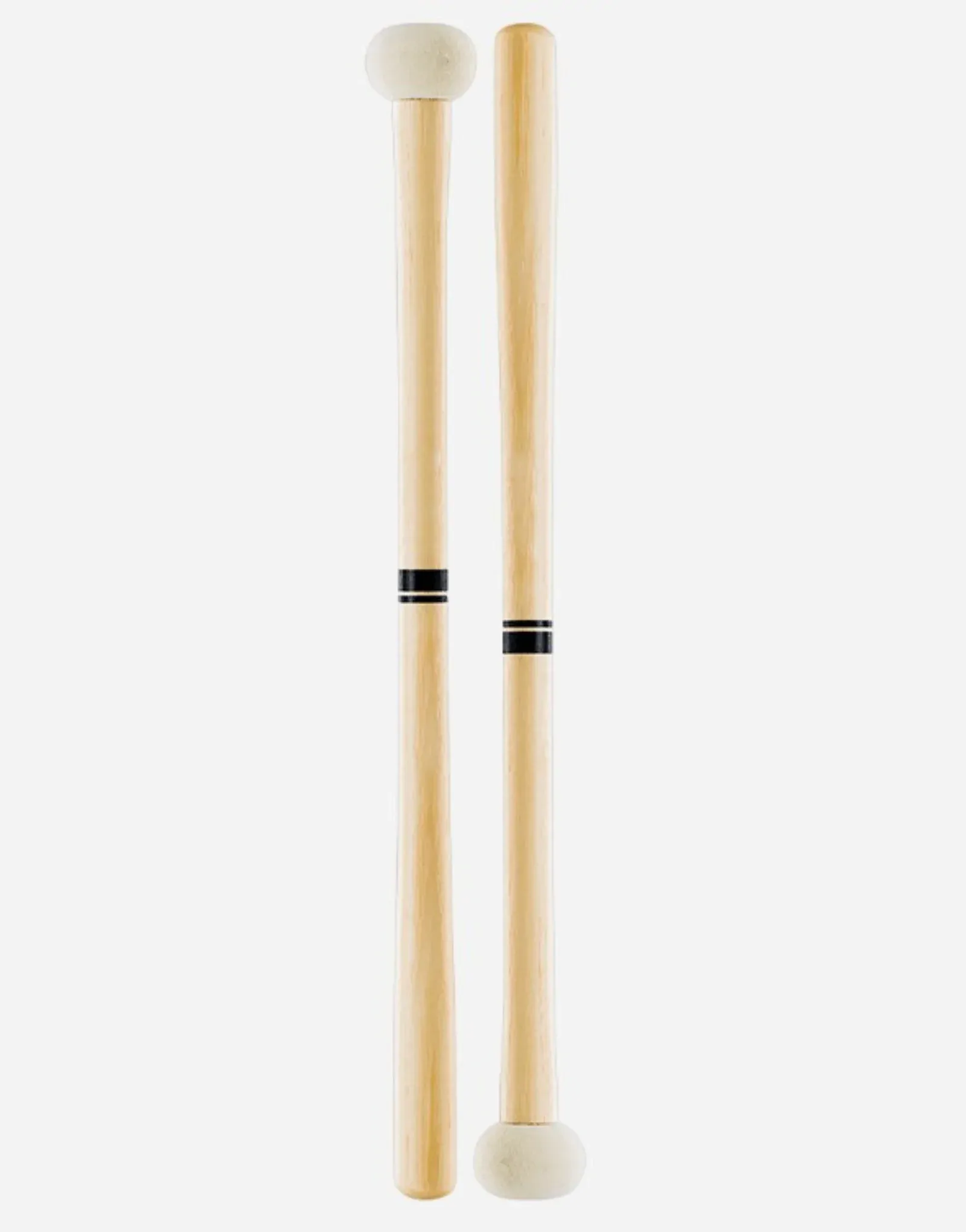 The Promark PSMB1 Performer Series Marching Bass Drum Mallets are designed for bass drums sized 356mm–457mm (14"–18"), offering excellent balance and projection. Each mallet features a dense felt head on a tapered hickory handle, with a comfort flare grip for improved control. Promark’s patented core moulding process ensures consistent weight, shape, and feel for reliable sound every time. The enhanced winding process increases wrap durability, letting you focus on your performance rather than mallet wear. Proudly designed, engineered, and manufactured in the USA. At Riffs & Licks Music, we think these mallets are the perfect choice for students and performers seeking quality, consistency, and comfort on the field.
