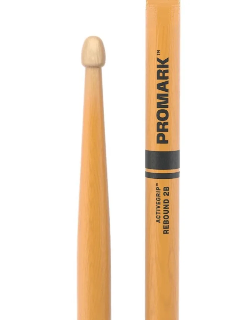 Introducing the ProMark R2BAGC Rebound 2B ActiveGrip Hickory Clear Wood Tip Drumsticks, featuring D'Addario's groundbreaking ActiveGrip technology. These drumsticks are meticulously crafted to provide an increasingly tacky grip as your hands sweat and temperature rises, ensuring consistent control during your performance. Engineered for agility and comfort, they won't cause discomfort or hinder your range of movement or technique. Proudly made in the USA at ProMark's Texas production facility, each pair guarantees exceptional quality and reliability. With a tip shape of acorn and a length of 16 inches, these sticks offer powerful performance across various musical styles.