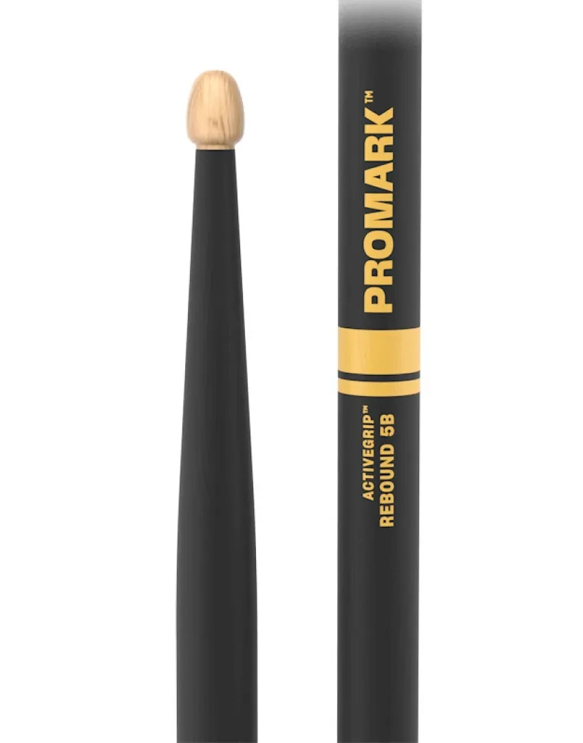 Experience the ProMark R5BAG Rebound 5B ActiveGrip Hickory Wood Tip Drumsticks, featuring D'Addario's innovative ActiveGrip technology. These drumsticks are designed to become tackier as you play, ensuring a secure grip even as your hands sweat and body temperature rises. Crafted for agility and comfort, they won't cause discomfort or restrict your movement or technique. Each pair is made in the USA at ProMark's Texas production facility, ensuring quality and precision. With a tip shape of acorn and a length of 16 inches, these sticks offer exceptional balance and control.