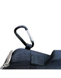 - 25 cm x 20 cm x 9 cm with carrying handle & carabiner clip