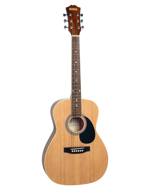 This ¾ size dreadnought features a spruce top, with linden back and sides, and cream binding with a triple-herringbone rosette. The catalpa neck has cream binding around a rockwood fingerboard, with dot inlays. Also features a black teardrop scratchplate, rockwood bridge with compensated saddle, and chrome diecast machine heads, and comes with a Uplay Guitar Guide and free online lessons. Natural Gloss finish.