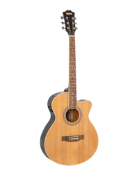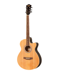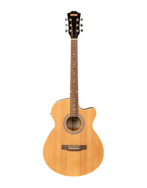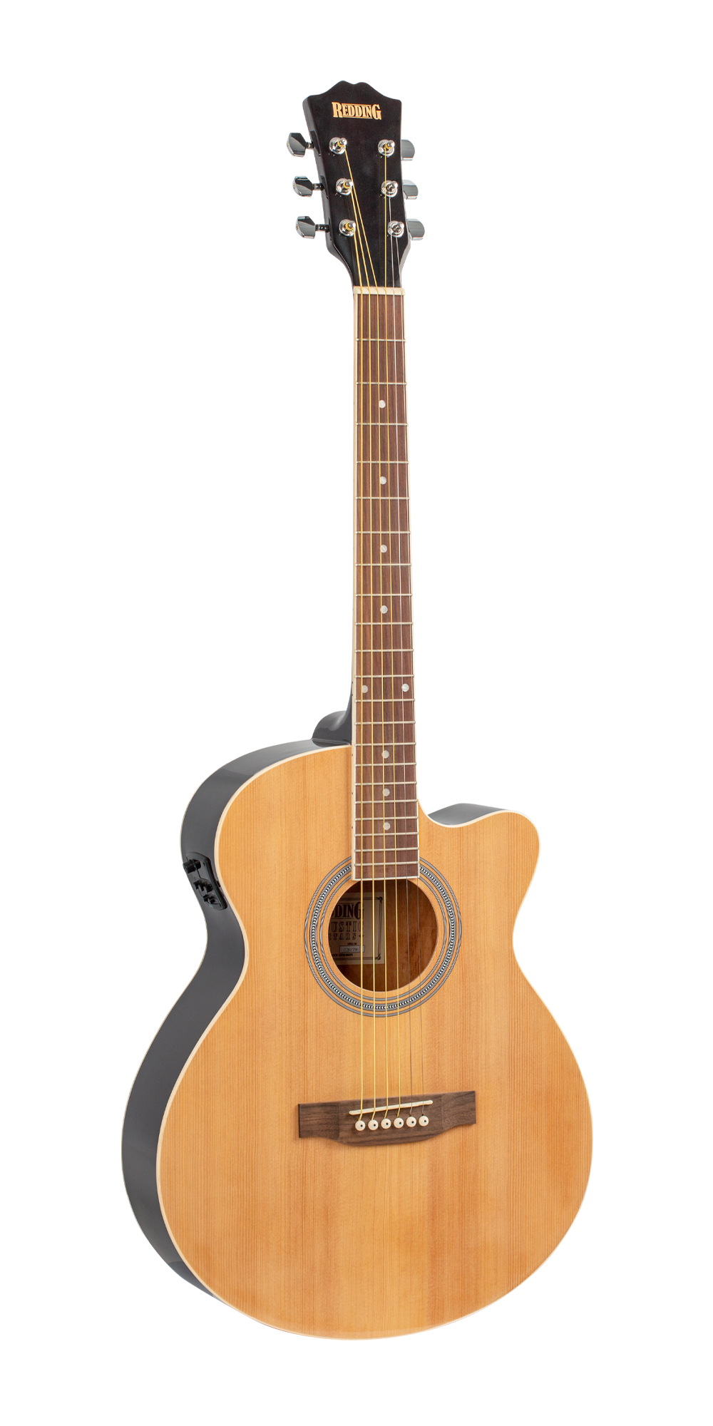 The Redding RGC51CE Grand Concert offers a smooth-playing acoustic-electric experience, blending classic craftsmanship with modern versatility. A spruce top and basswood back and sides deliver a rich, balanced tone, while the Venetian cutaway allows easy access to higher frets. The cream-bound catalpa neck with Rockwood fingerboard ensures comfortable playability, enhanced by stylish pearl dot inlays. The Redding 3-band EQ preamp with LCD tuner and phase shift switch lets you easily shape your sound on stage or in the studio. Chrome die-cast tuners, a compensated saddle, and a black teardrop scratchplate complete the premium feel.