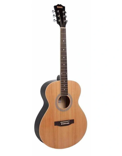 The Redding RGC51 is the perfect beginner's acoustic guitar. Lightweight, and with a slightly smaller-than-usual Grand Concert body size, the Redding RGC51 is a great choice for an introduction into acoustic guitars. The Redding RGC51 features a spruce top, basswood back and sides, and rosewood bridge.