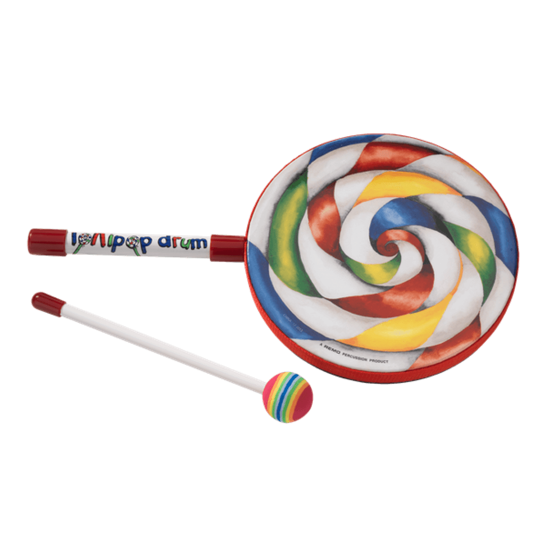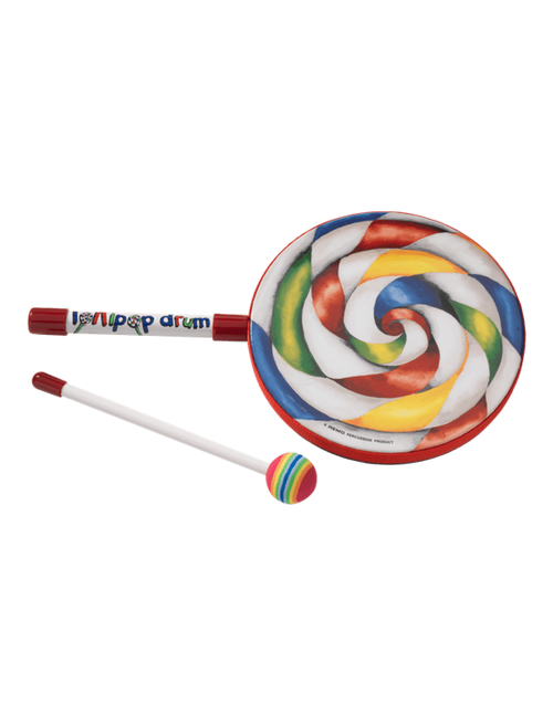 The Kids Percussion Lollipop Drum is an easy to play frame drum shaped like a lollipop and features a pre-tuned graphic drumhead with a warm, resonant sound. Featuring an Acousticon shell and a pre-tuned graphic drumhead, the Kids Percussion Lollipop Drum is easy to play with hands or the included mallet. Excellent for use in Recreational and classroom settings. Ages 3 and up.