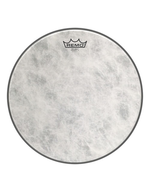 The Diplomat Fiberskyn drumheads feature warm, open midrange tones with outstanding definition and controlled sustain. Featuring 1-ply of 7.5-mil film laminated to a 3-mil polyspun fiber, Diplomat Fiberskyn drumheads are renowned for their sensitivity and articulation making them ideal for light to moderate playing with sticks, brushes and mallets in Concert Snare and Jazz Drumset applications
