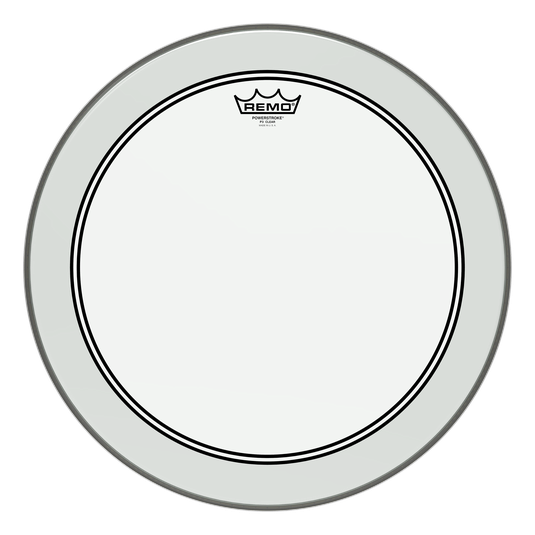 A versatile bass drum head from Remo, featuring a high-quality clear design with a clear dot, offering focused mid and low tones with a well-defined attack. These bass drum heads features a single ply, 10-mil clear film construction, with a 10-mil inlay ring. Providing a perfect balance of response and tone control, the Remo Powerstroke 3 Clear Bass Drum Heads are available in a wide range of sizes, allowing you to select the right heads for your setup.