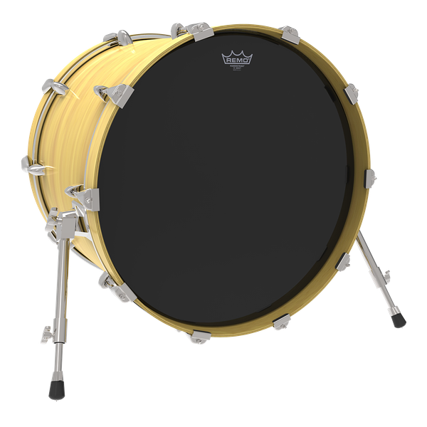 The Powerstroke P3 Ebony 5" Black DynamO features midrange and low end resonant tones with a pre-cut 5" hole with a DynamO reinforcement ring installed. Constructed with 1-ply 10-mil Ebony film with a 10-mil inlay ring and 5" Black DynamO, the Powerstroke P3 Ebony drumhead provides a perfect balance of mid and low tones that has made Powerstroke Ebony of Remo's most popular resonant Bass drumheads.