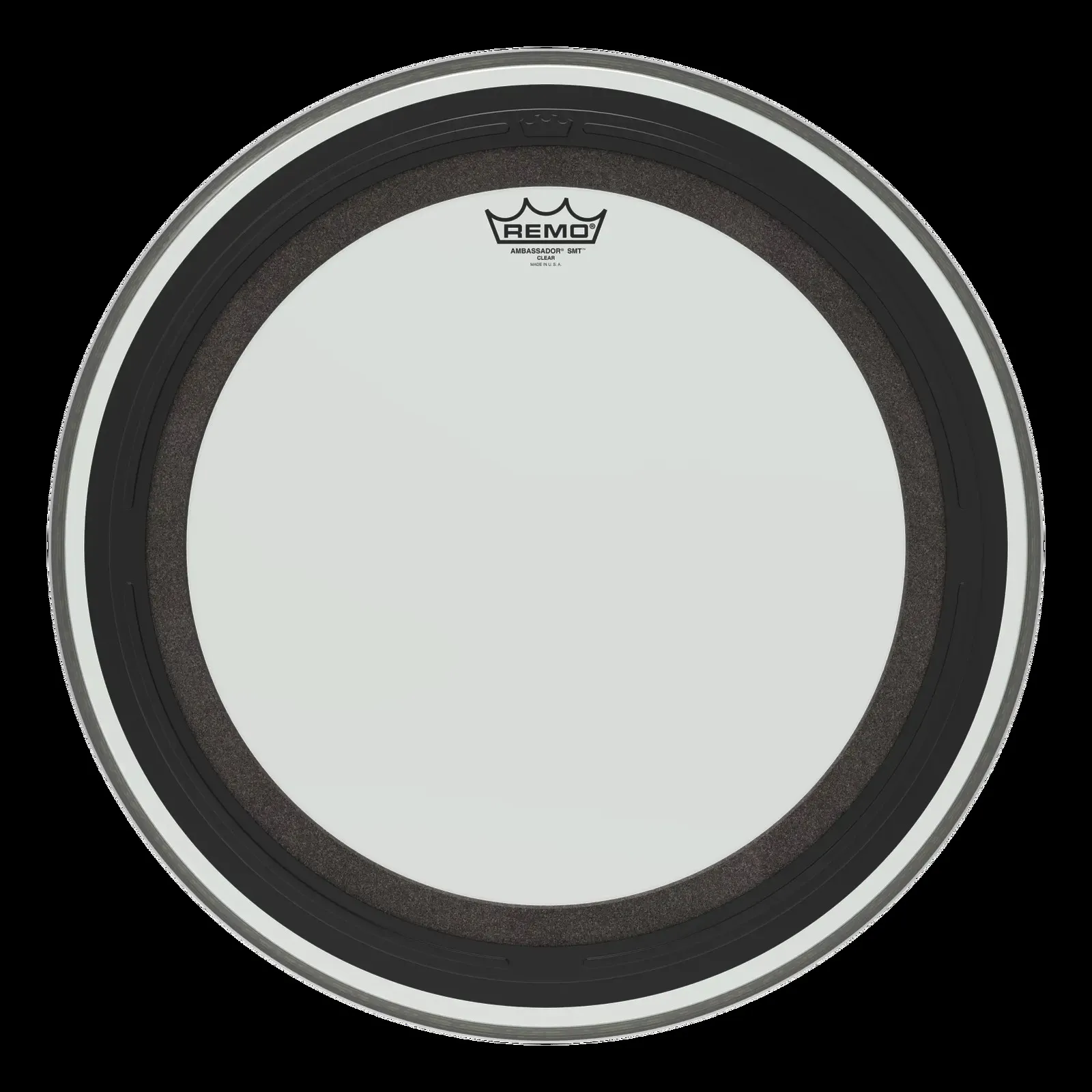 The Ambassador SMT Clear bass drumhead is a pre-muffled design featuring Sub Muffl Technology. It has controlled high and mid frequencies with powerful low tones, a broad tonal spectrum of tuning ranges for Jazz and contemporary applications, and additional attack with subsonic low frequencies. It features 10-mil single ply Clear film featuring a pre-Muffled design with Sub Muffl Technology.