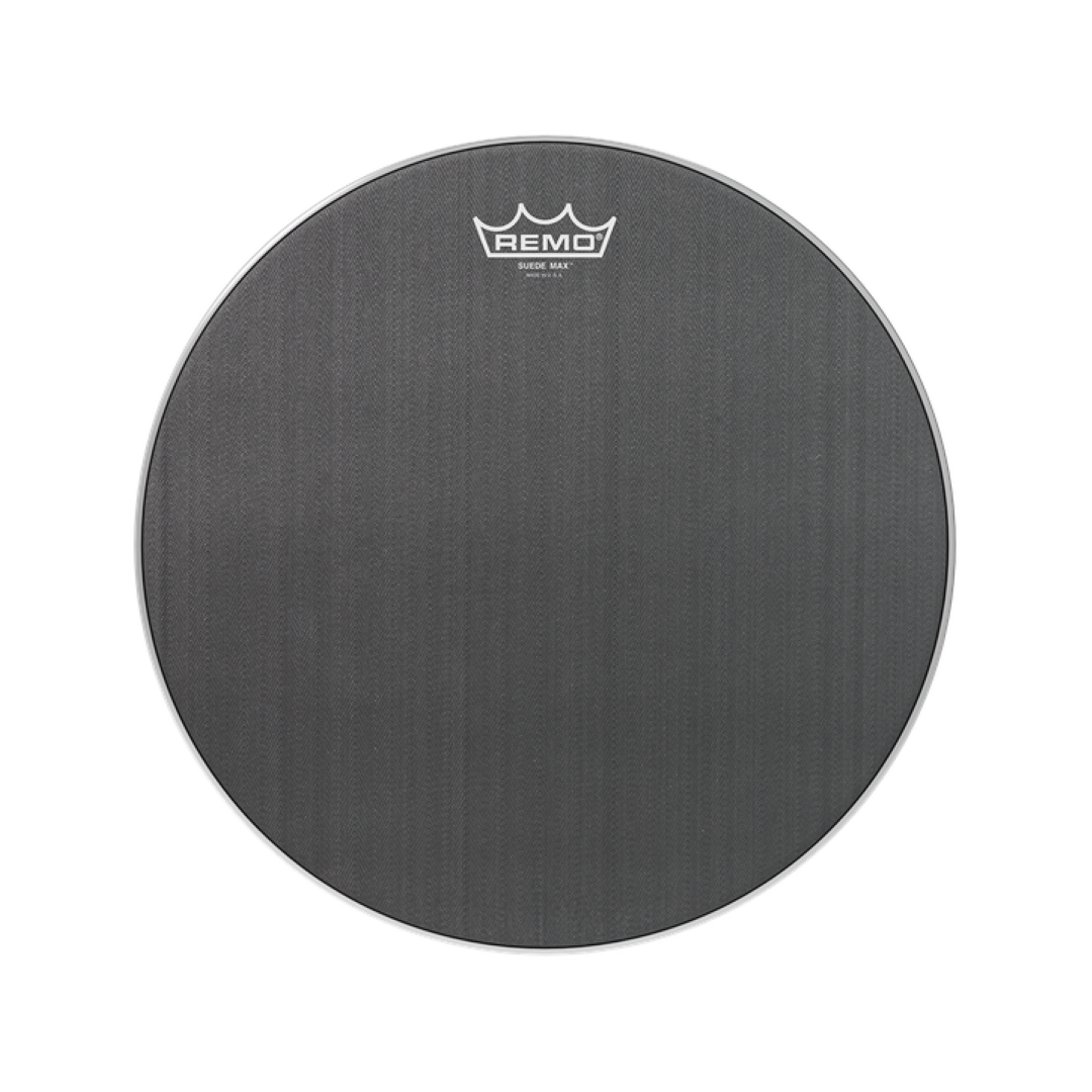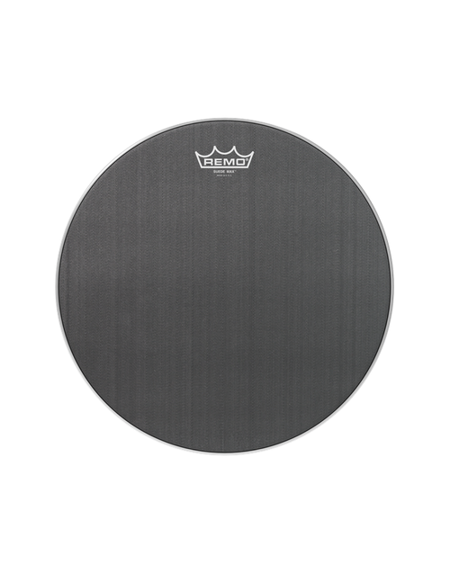 The Suede Max Marching Snare drumhead provides a softer feel and warmer tone featuring a black matte suede finish for a warm attack. Suede Max heads are constructed with a State of the Art high tension fabric weave for maximum durability, combined with Remo’s proprietary suede texturing process.