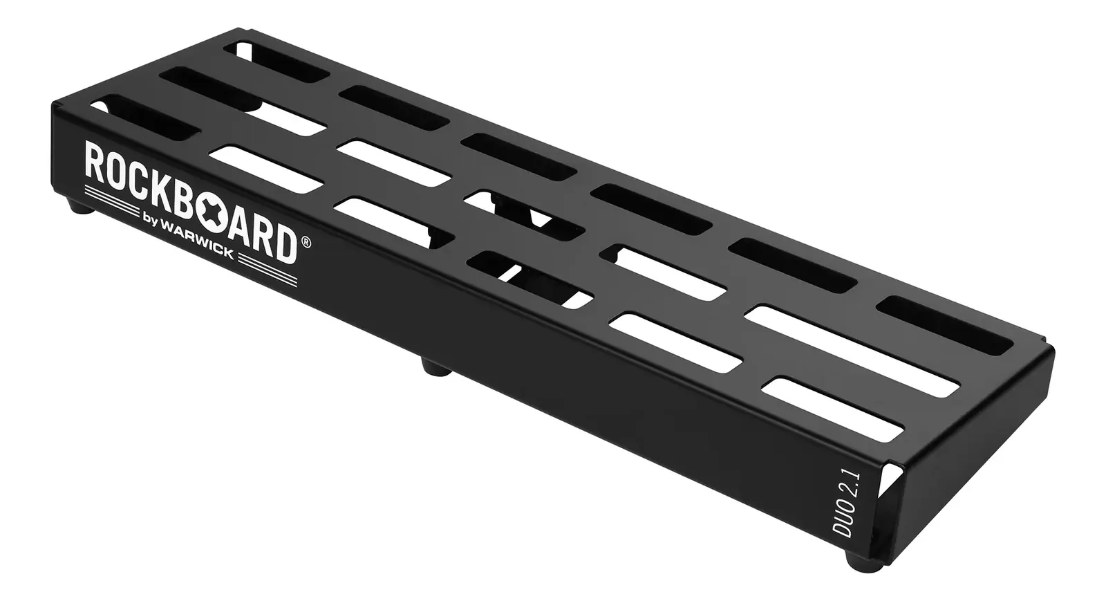 The RockBoard DUO 2.1 Pedalboard with Gig Bag offers a sturdy, compact platform for 4 to 7 pedals, ideal for players looking for a portable, clutter-free setup. Constructed from a single piece of cold-rolled aluminium with no welds, it delivers a flat, torsion-resistant surface reinforced with vertical struts. The slotted design supports clean cable routing and works seamlessly with RockBoard’s QuickMount system—no hook and loop tape needed. Mounting holes for RockBoard LED lights are included, and most small power supplies fit easily underneath. A padded gig bag provides convenient and protective transport.