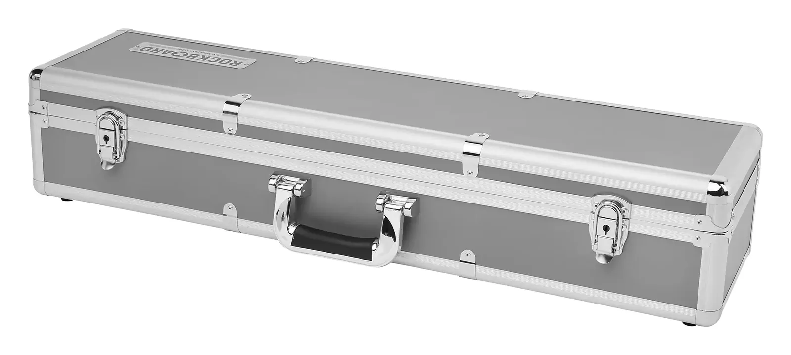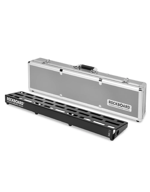 The RockBoard DUO 2.3 Pedalboard with Flight Case is a lightweight yet rugged solution for players needing a compact board that holds 7 to 11 pedals. Built from a single sheet of cold-rolled aluminium with no welds, the DUO 2.3 offers a flat, torsion-resistant surface reinforced with vertical support struts. Its slotted design allows for clean cable routing and is fully compatible with RockBoard’s QuickMount system. Most power supplies can be mounted underneath, and LED light mounting holes are included. The sturdy flight case ensures reliable protection for transport, making this setup ideal for touring or gigging musicians.