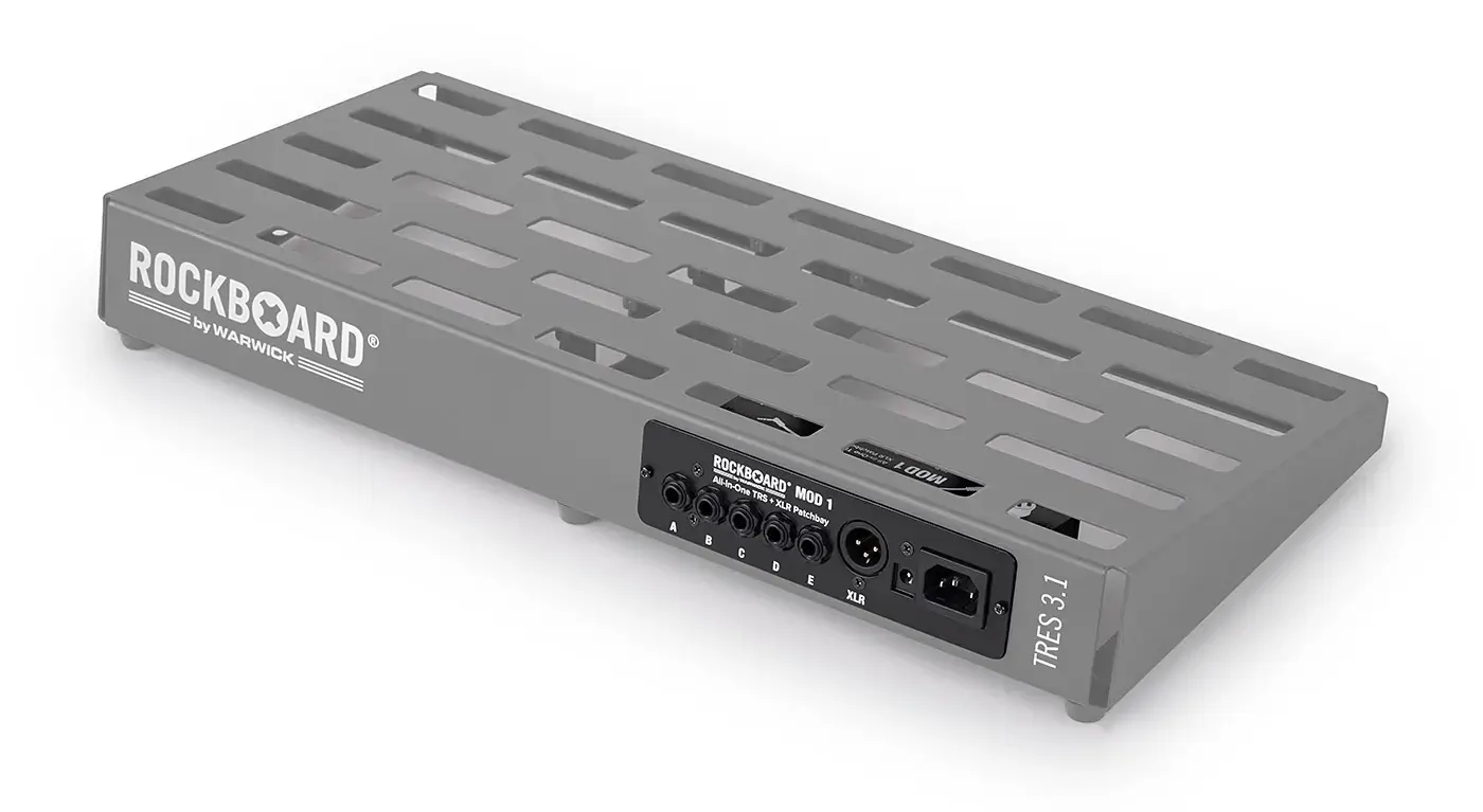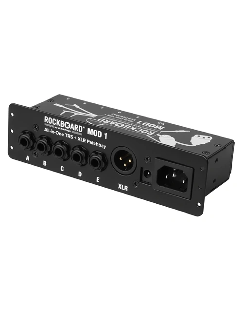The RockBoard MOD 1 V2 is a versatile patchbay module designed to centralise all connections on your pedalboard. With five TRS through-ports, an XLR through, a DC barrel through, and an AC IEC through, it supports everything from the 4-cable method to direct PA outputs. Its mirrored input/output layout simplifies routing and keeps your setup clean and efficient. Compatible with RockBoard MOD slots (and other pedal boards via the optional MOD RACK) , it provides a professional, clutter-free access point to your rig. Whether you're routing power, audio, or control signals, the MOD 1 V2 makes setup and teardown fast and frustration-free.